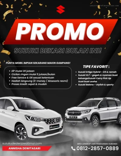 Nikmati promo, cicilan, cashback, dan DP ringan untuk berbagai tipe mobil Suzuki.